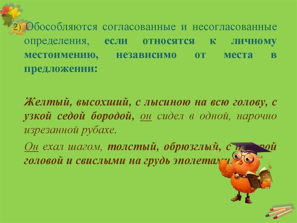 2) Обособляются согласованные и несогласованныеопределения, если относятся к личному