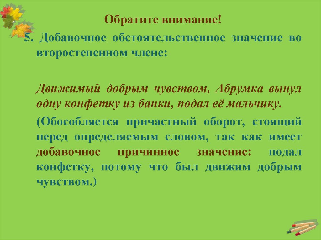 Обратите внимание!5. Добавочное обстоятельственное значение во