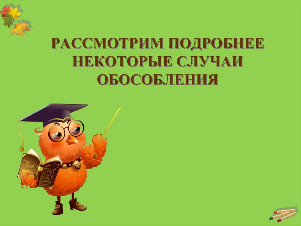 9. РАССМОТРИМ ПОДРОБНЕЕ НЕКОТОРЫЕ СЛУЧАИ ОБОСОБЛЕНИЯ