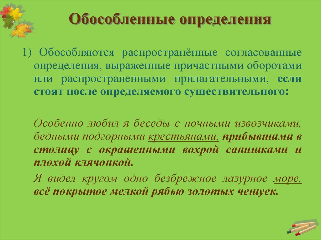 Второстепенные члены предложения, выделяемые посмыслу и интонационно, называются обособленными,