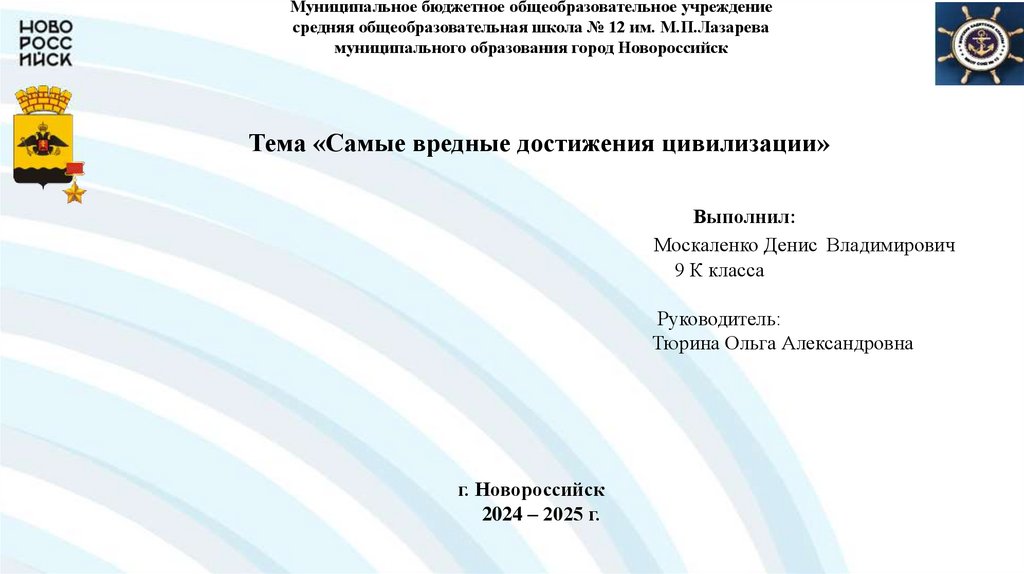 Муниципальное бюджетное общеобразовательное учреждениесредняя общеобразовательная школа № 12 им. М.П.Лазарева