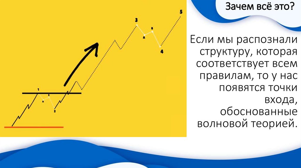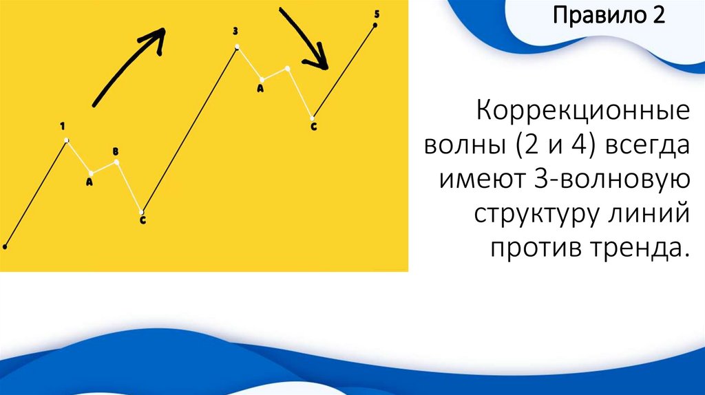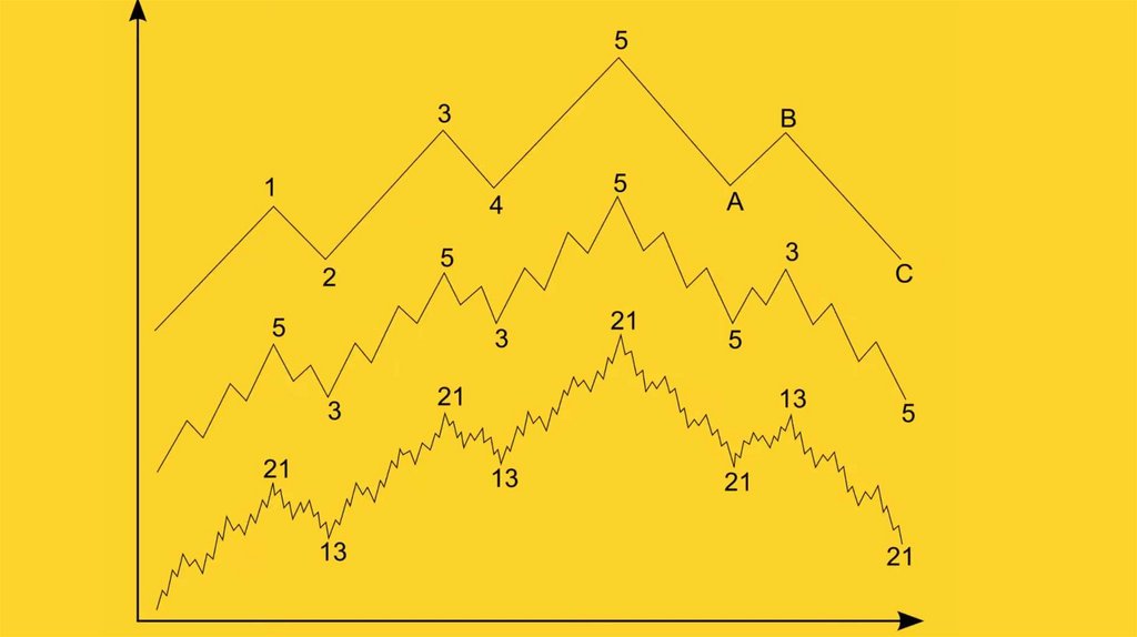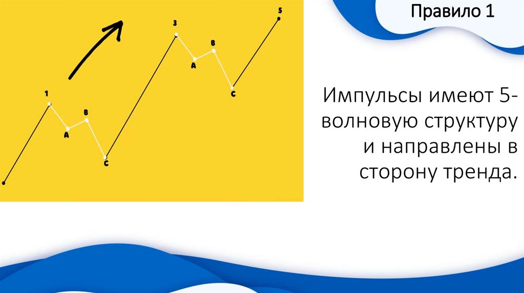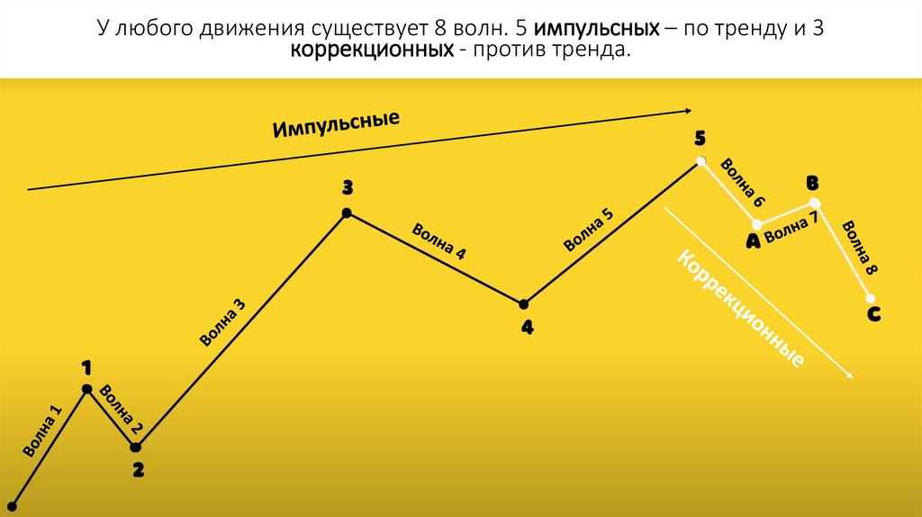 У любого движения существует 8 волн. 5 импульсных – по тренду и 3коррекционных - против тренда.