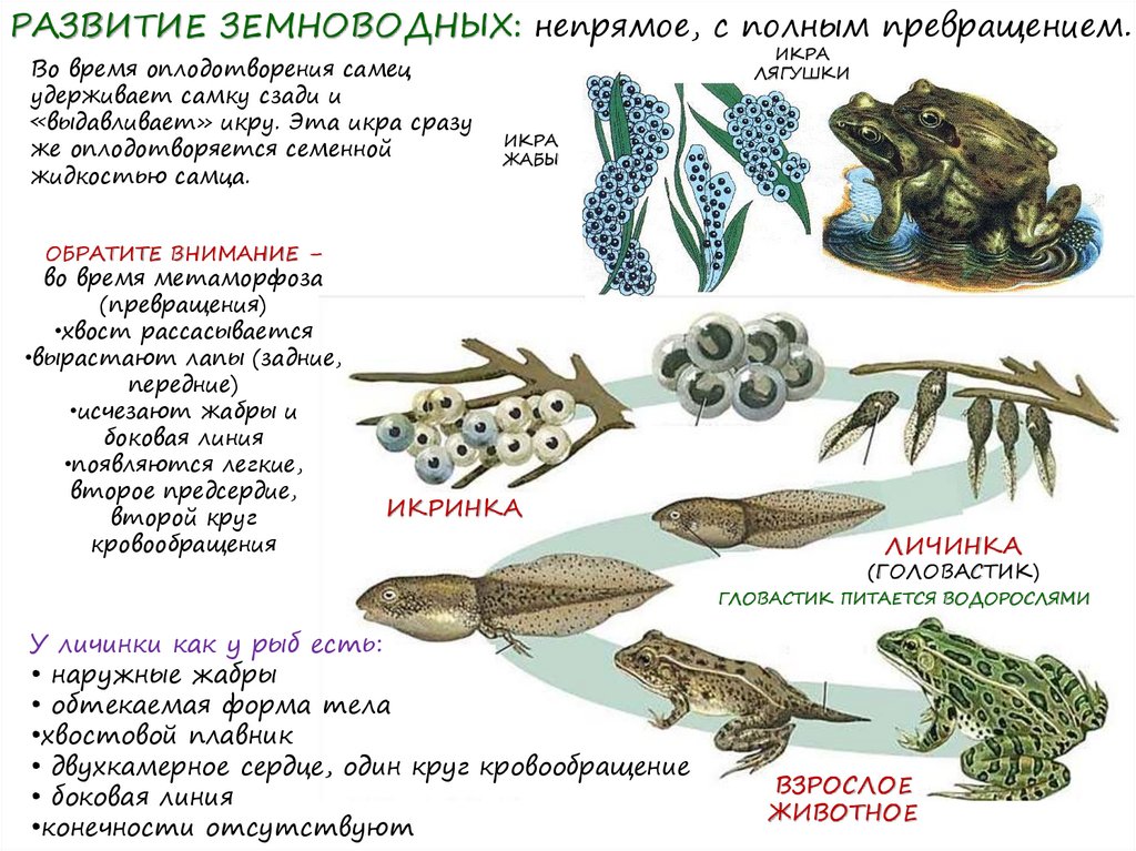 РАЗВИТИЕ ЗЕМНОВОДНЫХ: непрямое, с полным превращением.Во время оплодотворения самец