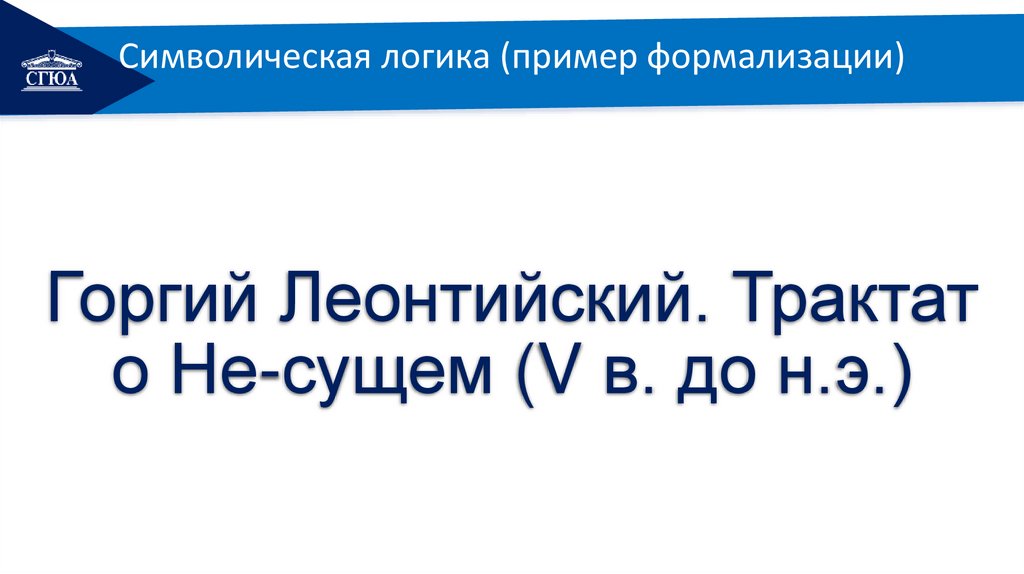 РЕМОНТСимволическая логика (пример формализации)Горгий Леонтийский. Трактат