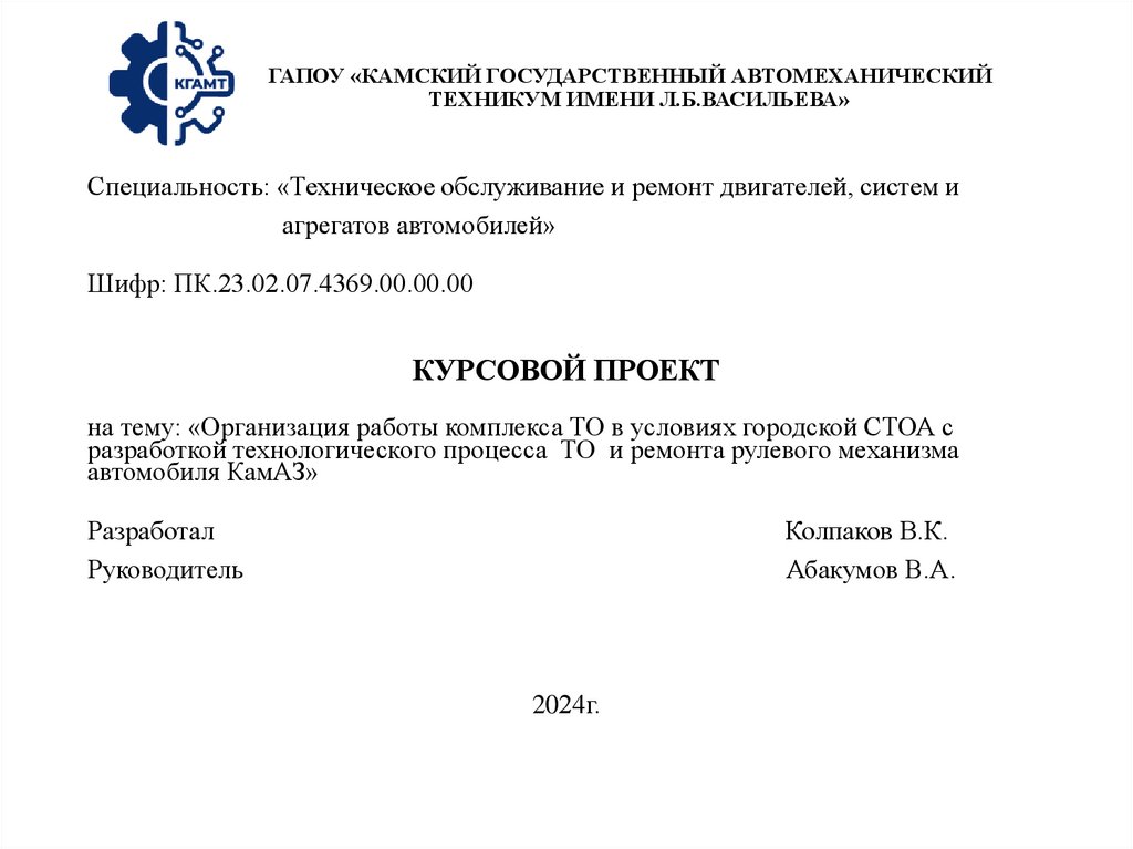 1. ГАПОУ «КАМСКИЙ ГОСУДАРСТВЕННЫЙ АВТОМЕХАНИЧЕСКИЙ ТЕХНИКУМ ИМЕНИ Л.Б.ВАСИЛЬЕВА»