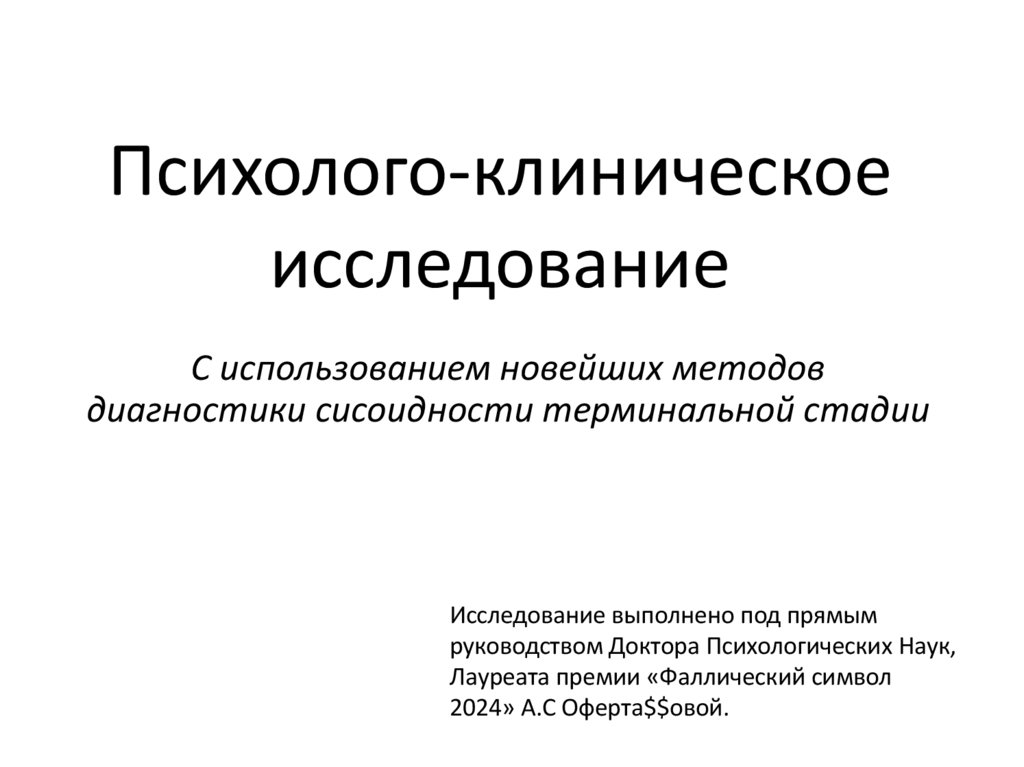 Психолого-клиническое исследование с использованием новейших методов диагностики сисоидности терминальной стадии