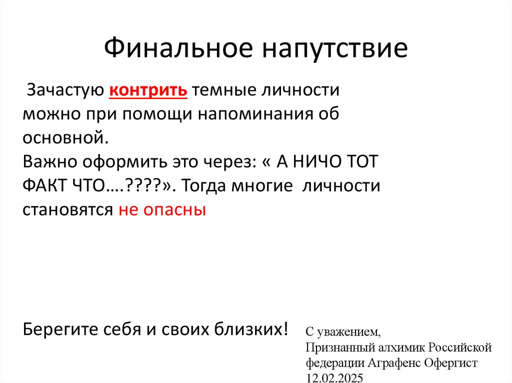 Финальное напутствиеЗачастую контрить темные личности