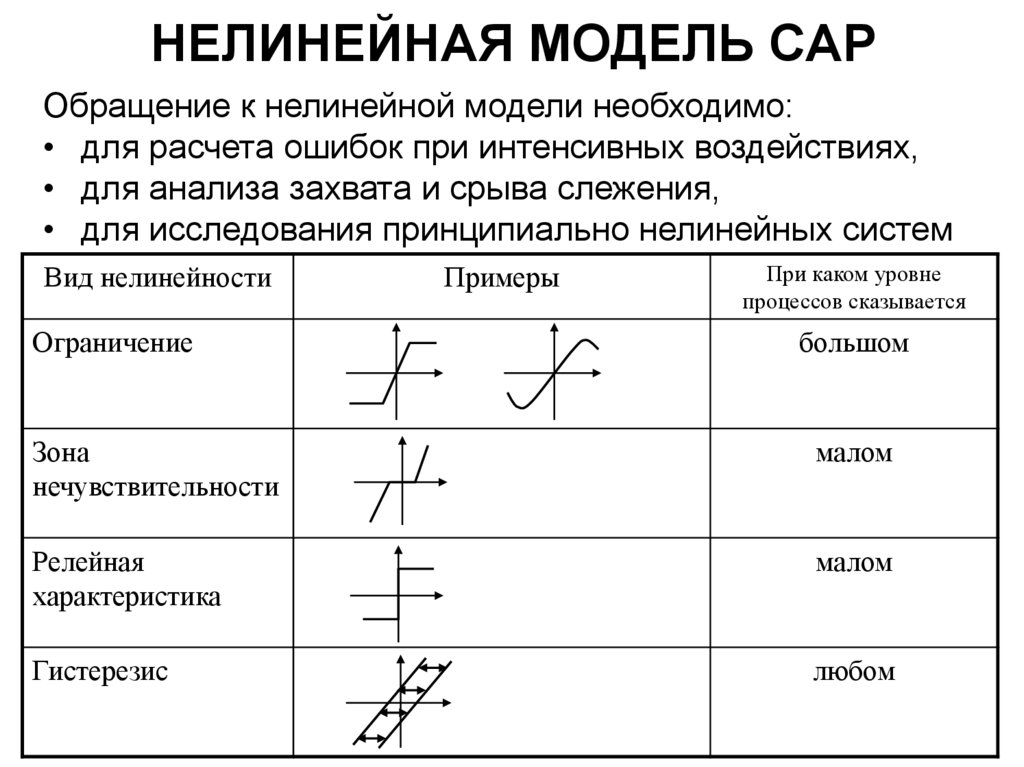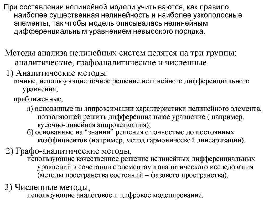 При составлении нелинейной модели учитываются, как правило,наиболее существенная нелинейность и наиболее узкополосные