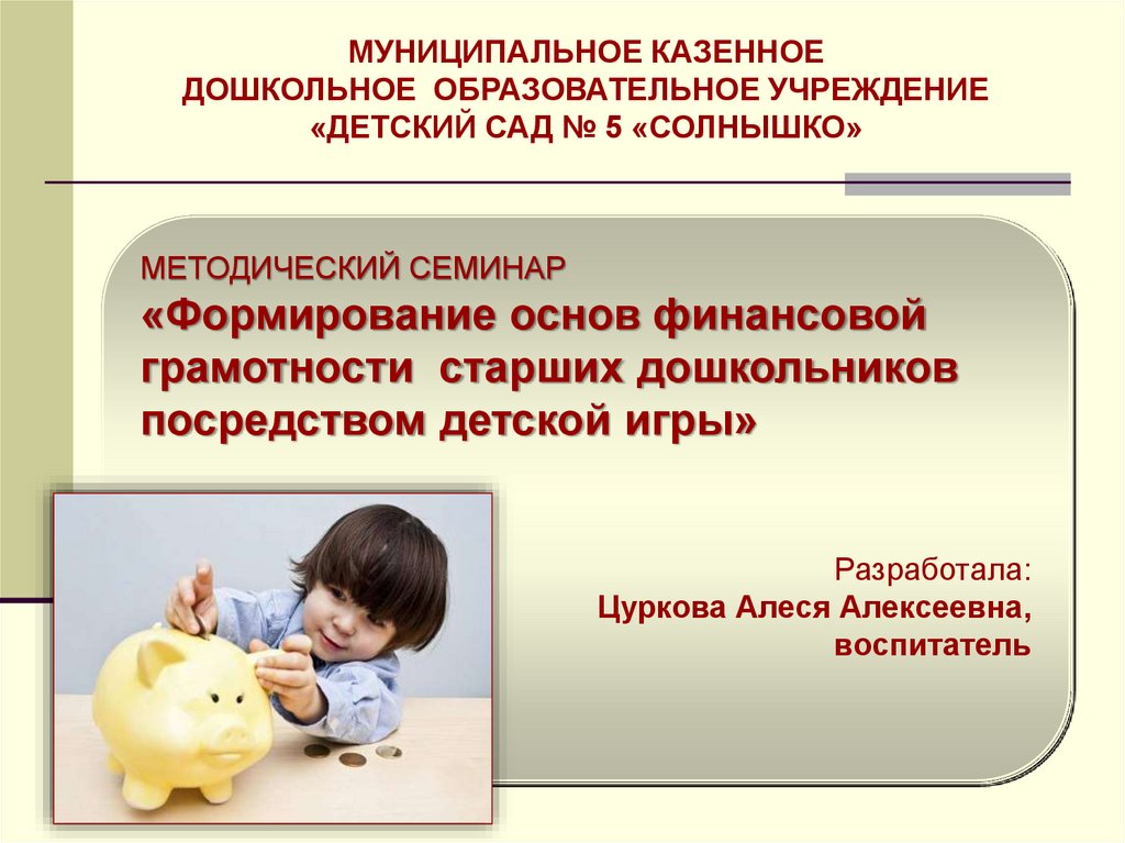Формирование основ финансовой грамотности старших дошкольников посредством детской игры