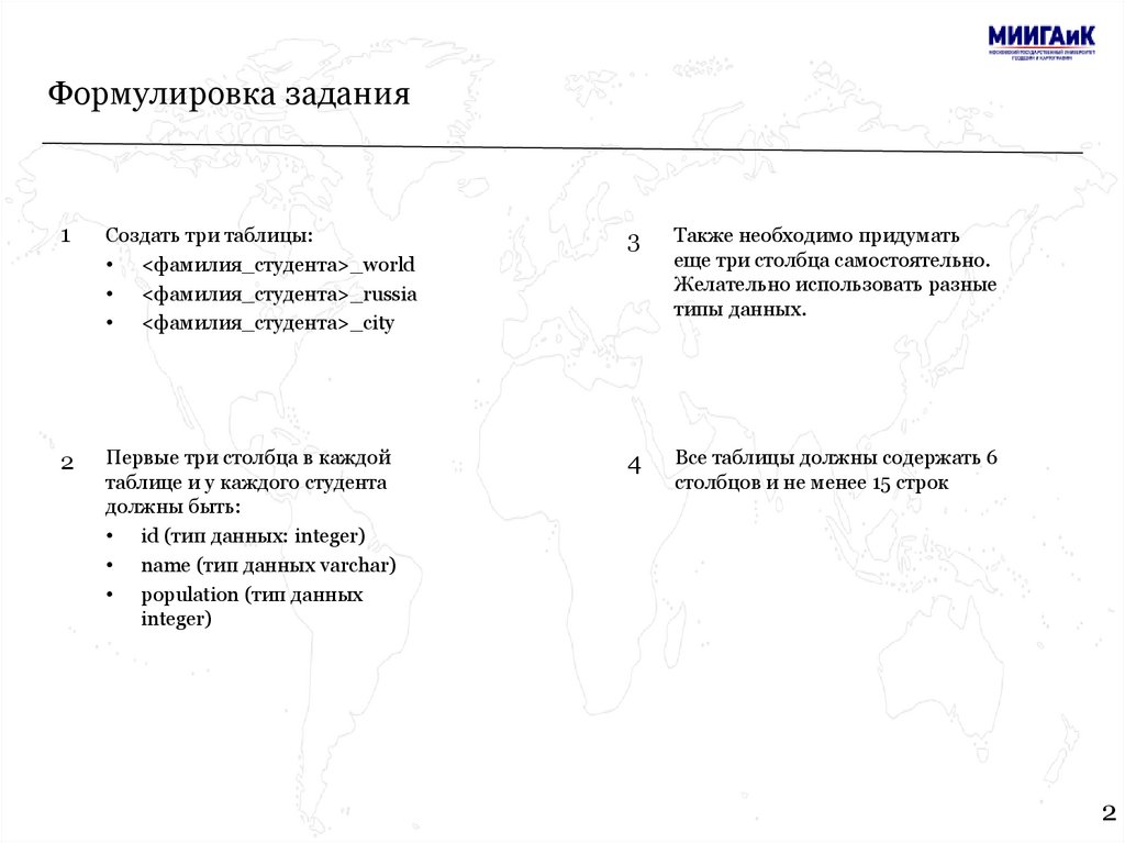 Формулировка задания1