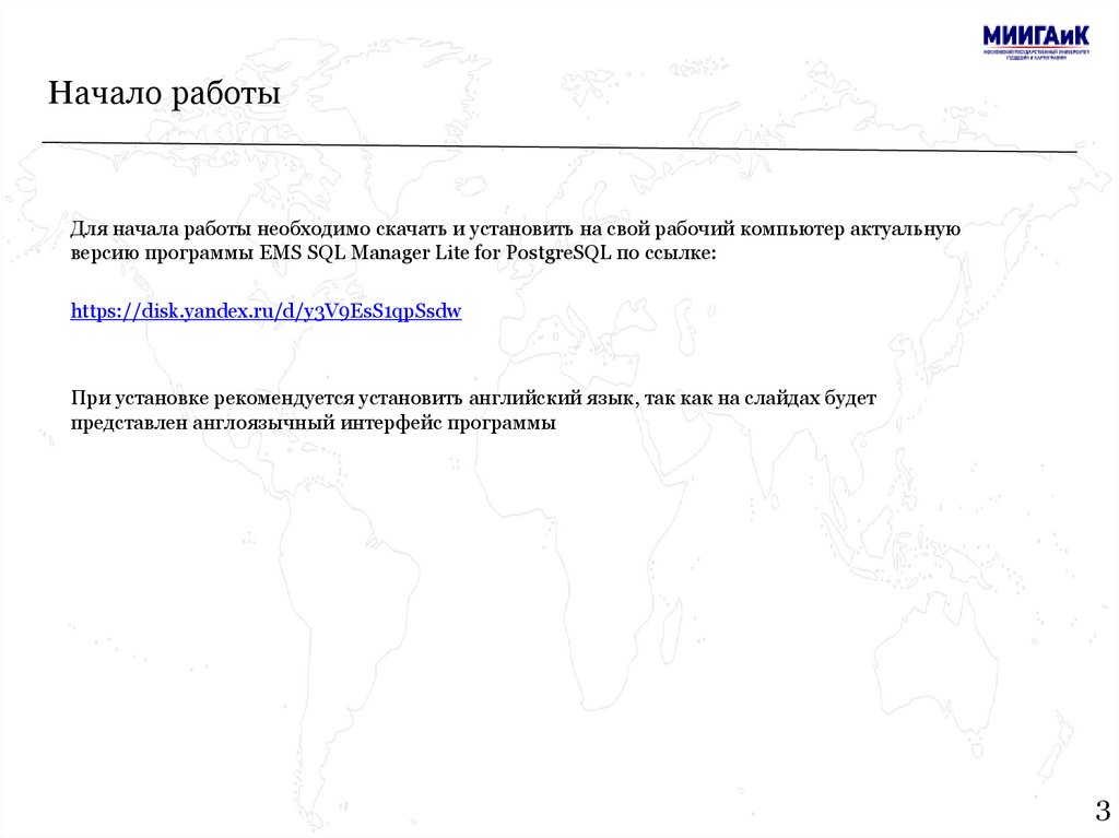 Начало работыДля начала работы необходимо скачать и установить на свой рабочий компьютер актуальную
