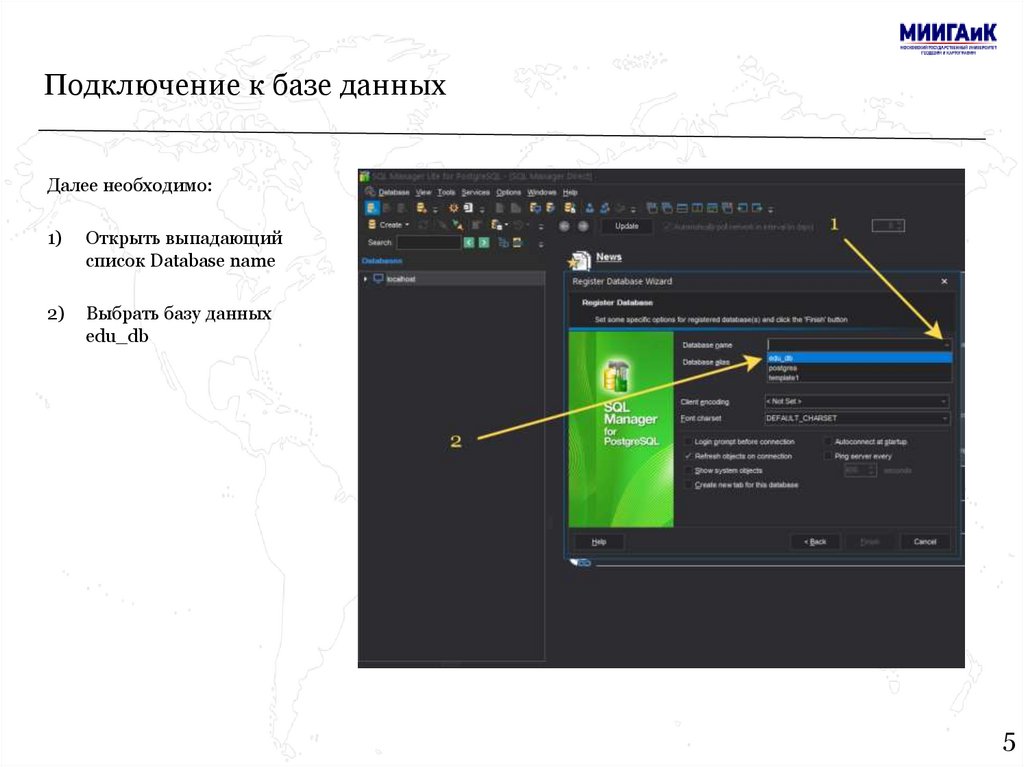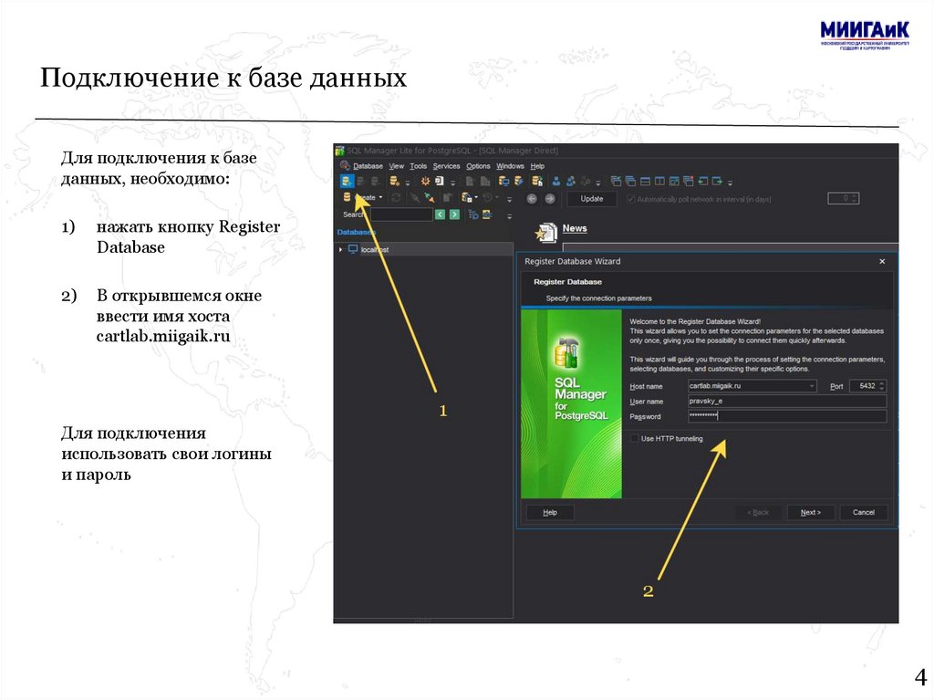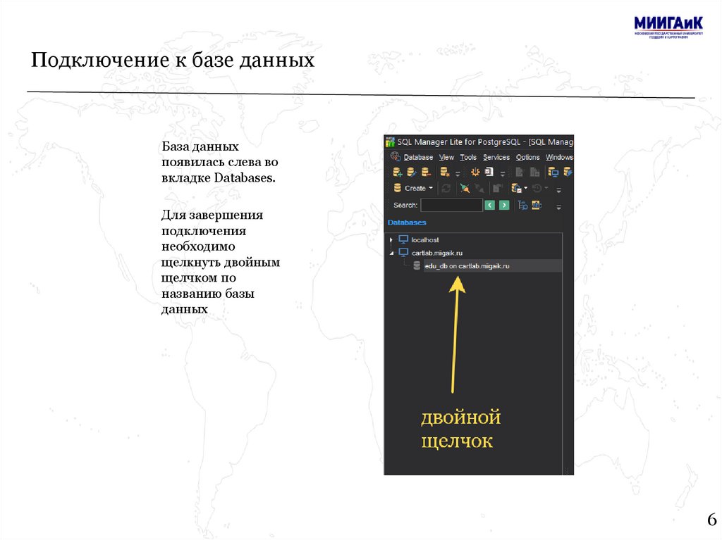 Подключение к базе данныхДля подключения к базе