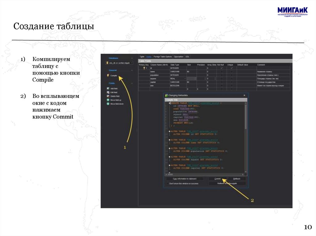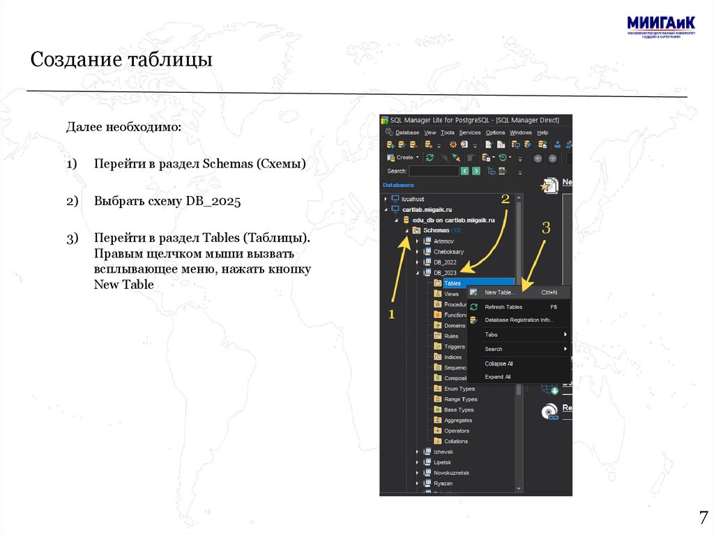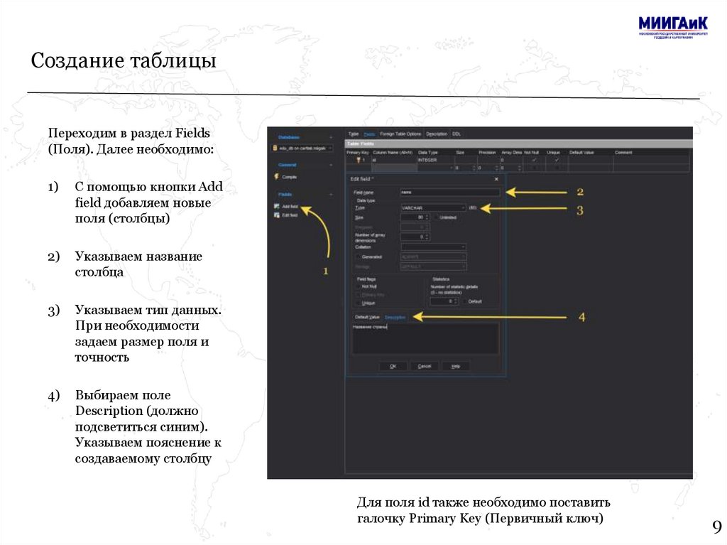 Создание таблицыДалее необходимо: