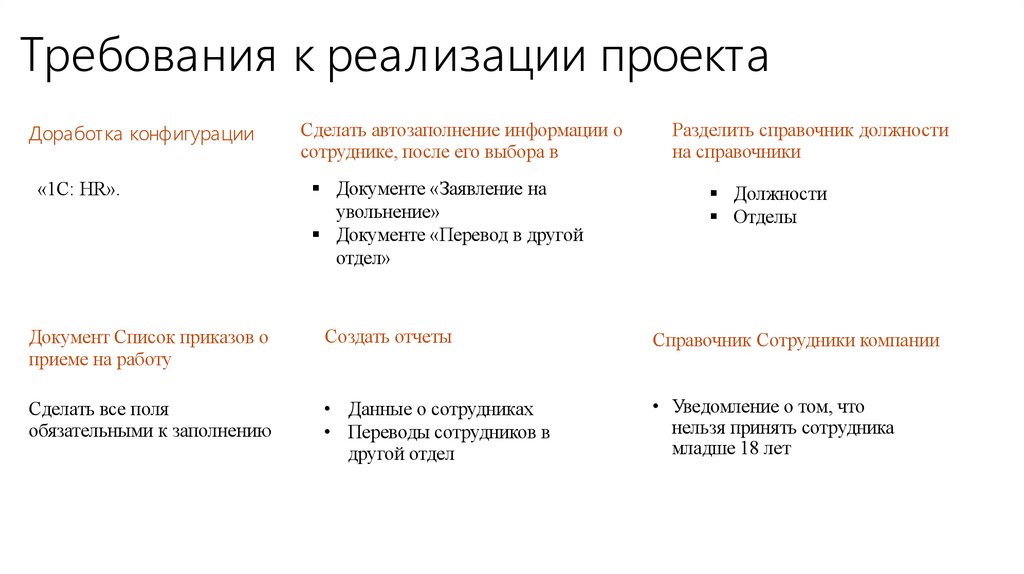 Частное техническое задание на доработку конфигуратора 1 С: HR