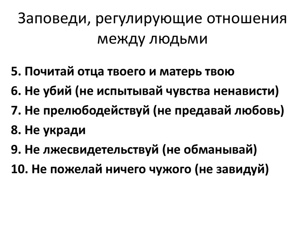 Заповеди, регулирующие отношениямежду людьми