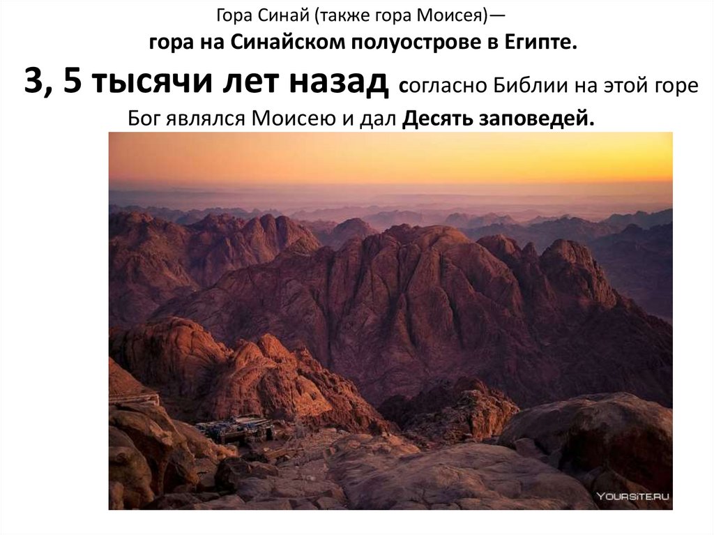 Гора Синай (также гора Моисея)—гора на Синайском полуострове в Египте.