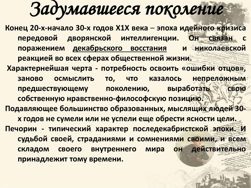 Задумавшееся поколениеКонец 20-х-начало 30-х годов Х1Х века – эпоха идейного кризиса