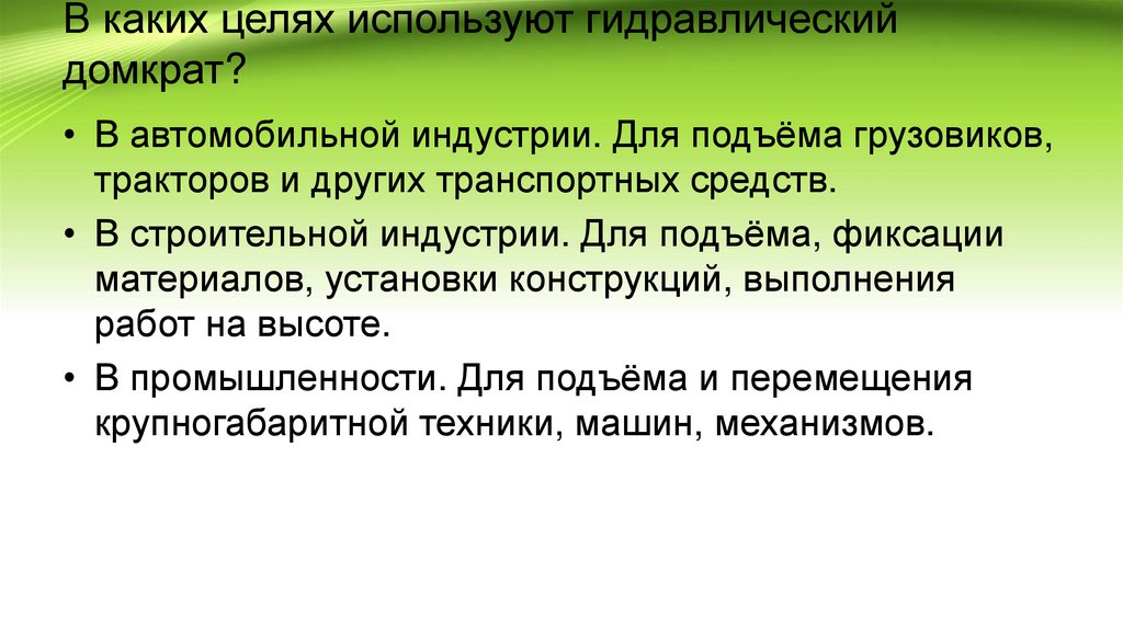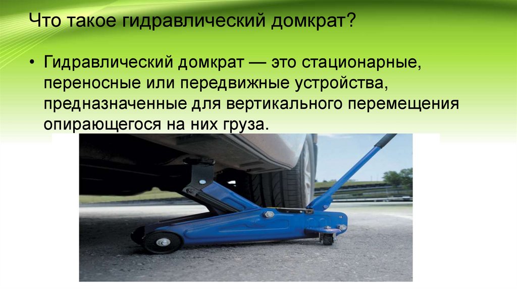 Что такое гидравлический домкрат?• Гидравлический домкрат — это стационарные,