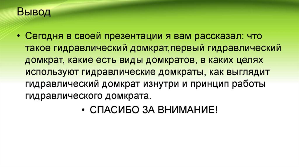 Вывод• Сегодня в своей презентации я вам рассказал: что