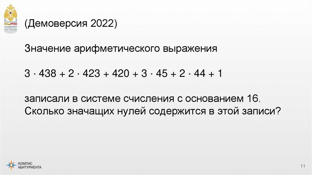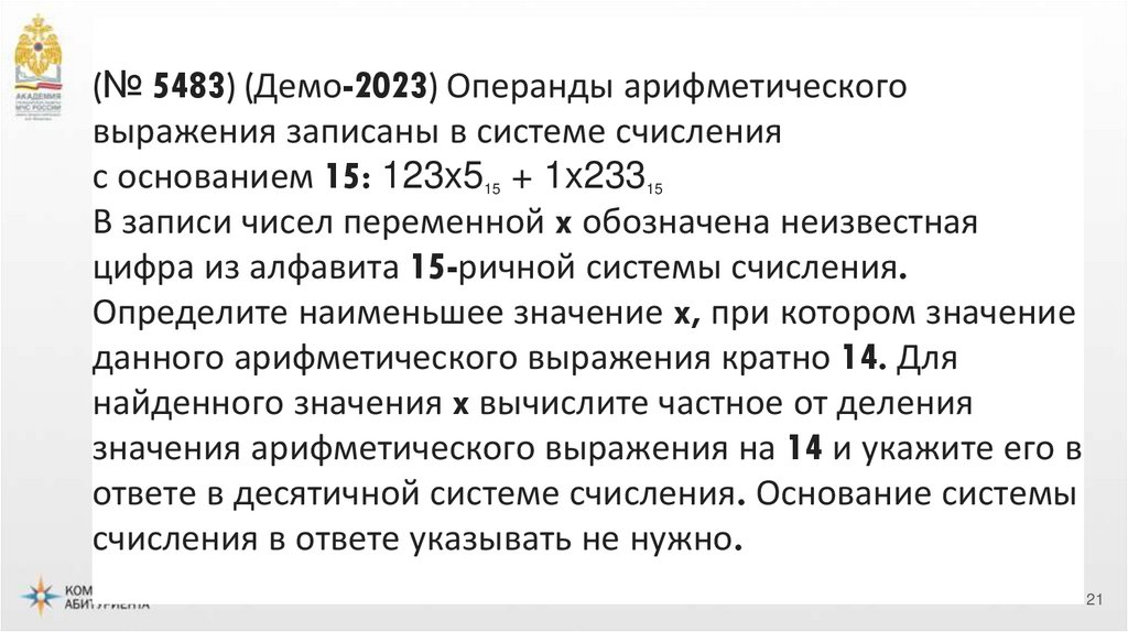 (№ 5483) (Демо-2023) Операнды арифметическоговыражения записаны в системе счисления