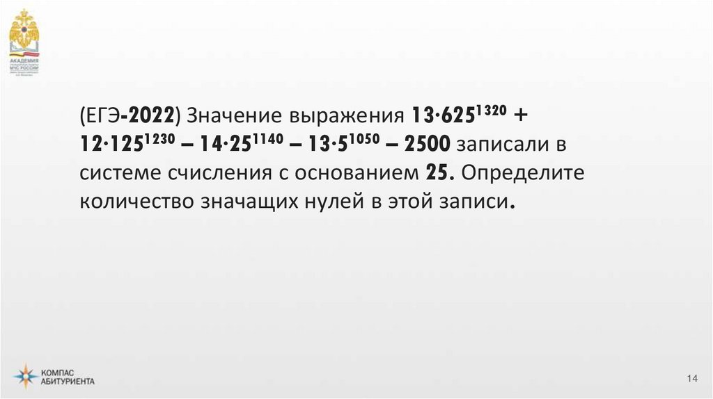 Кодирование чисел. Системы счисления. Операции в одной СС (задание 14 из ЕГЭ)