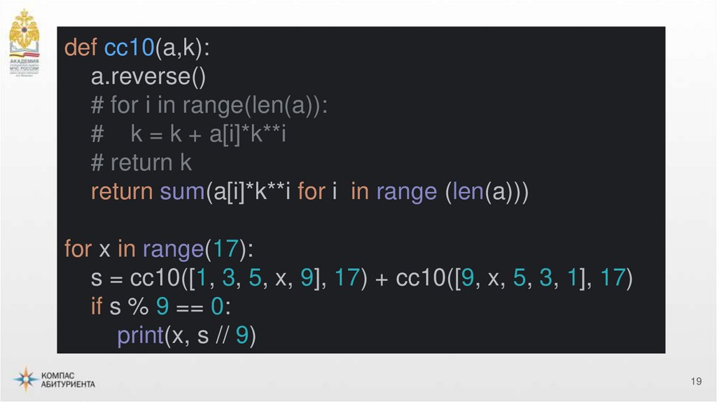 s = cc10([1, 3, 5, x, 9], 17) + cc10([9, x, 5, 3, 1], 17)