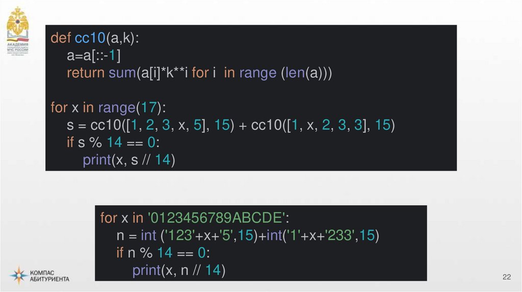 выражения кратно 22. Для найденного х вычислите частное от деления