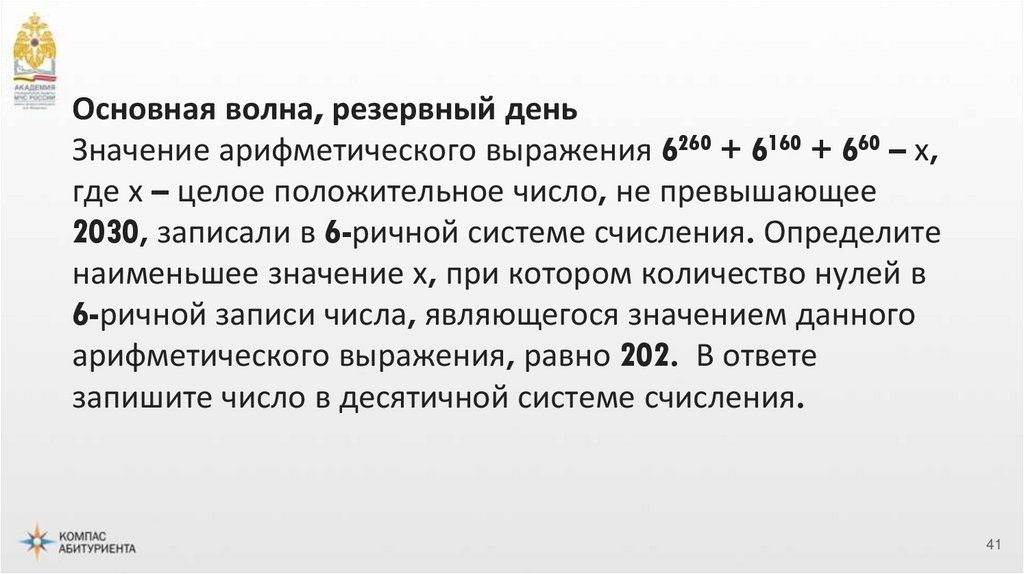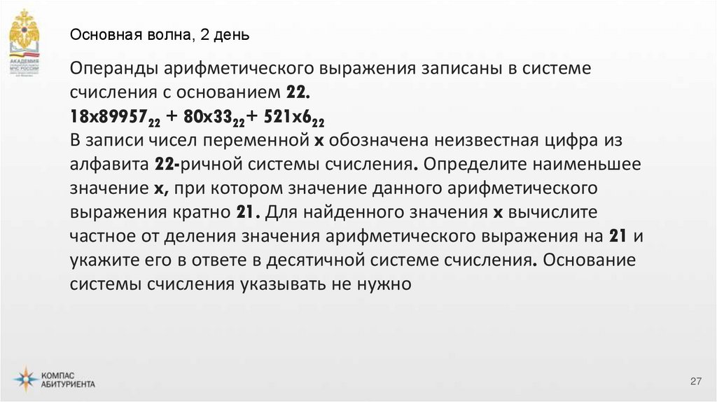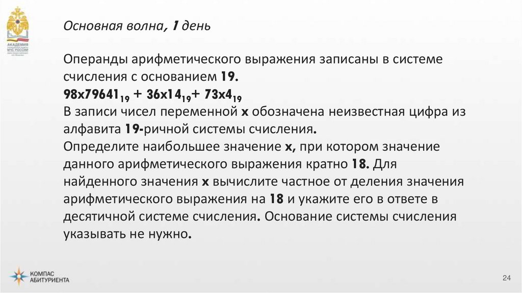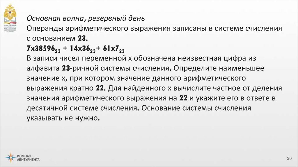Основная волна, резервный деньОперанды арифметического выражения записаны в системе счисления