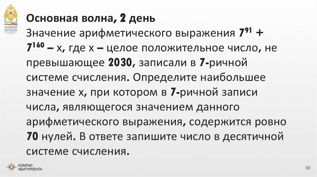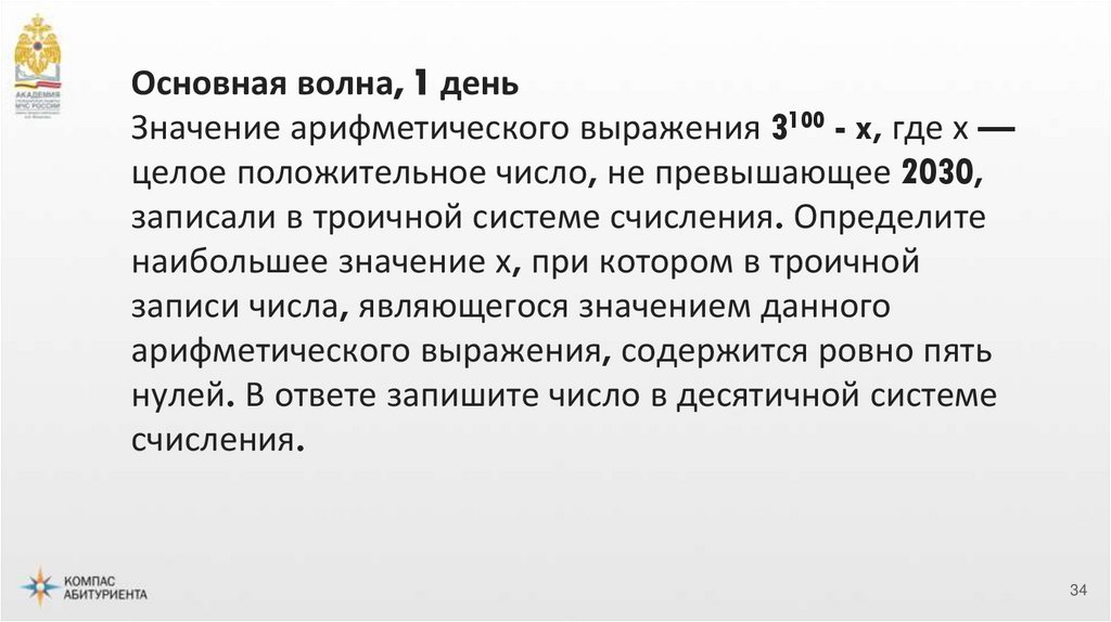 Основная волна, 1 деньЗначение арифметического выражения 3100 - x, где х —