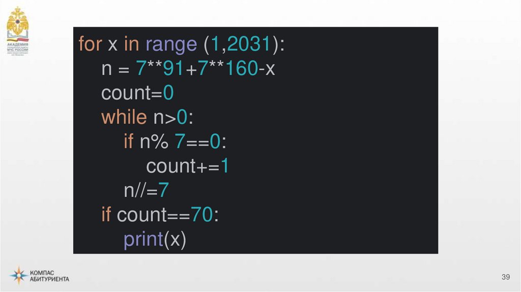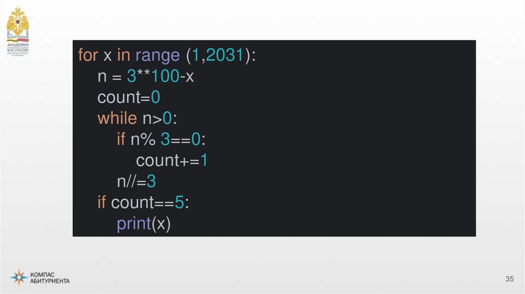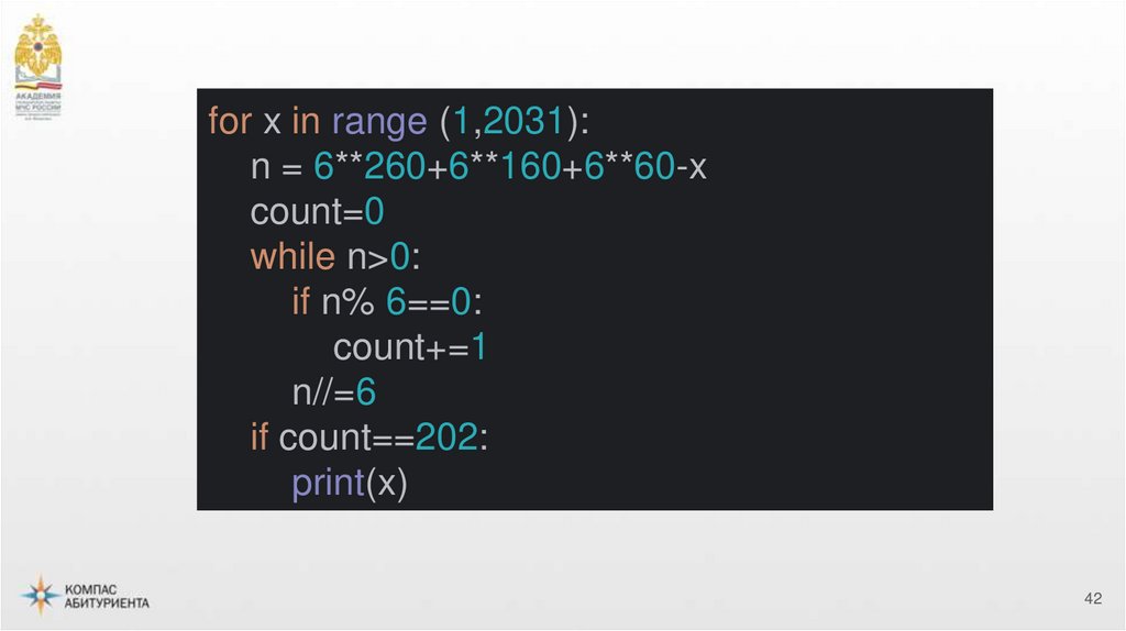 for x in range (1,2031):n = 6**260+6**160+6**60-x