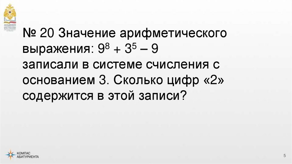 № 20 Значение арифметическоговыражения: 98 + 35 – 9