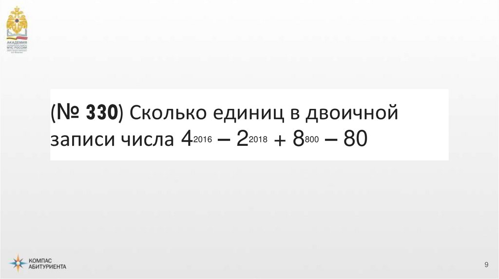 (№ 330) Сколько единиц в двоичнойзаписи числа 4 – 2 + 8 – 80