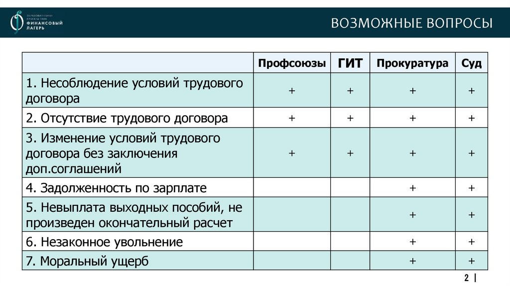 ВОЗМОЖНЫЕ ВОПРОСЫПрофсоюзы