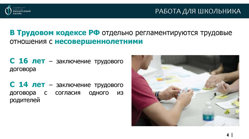 РАБОТА ДЛЯ ШКОЛЬНИКАВ Трудовом кодексе РФ отдельно регламентируются трудовые