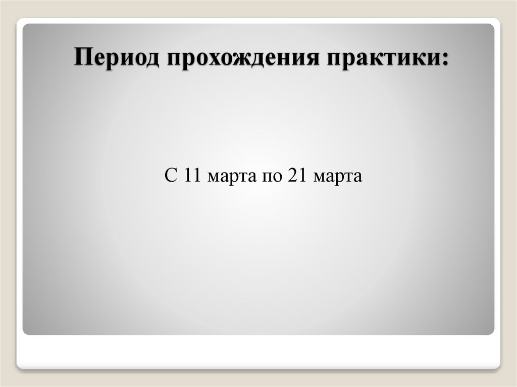Период прохождения практики:С 11 марта по 21 марта