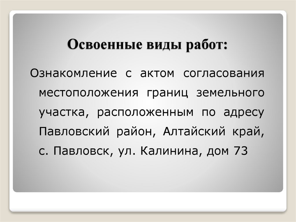 Освоенные виды работ:Ознакомление с актом согласования
