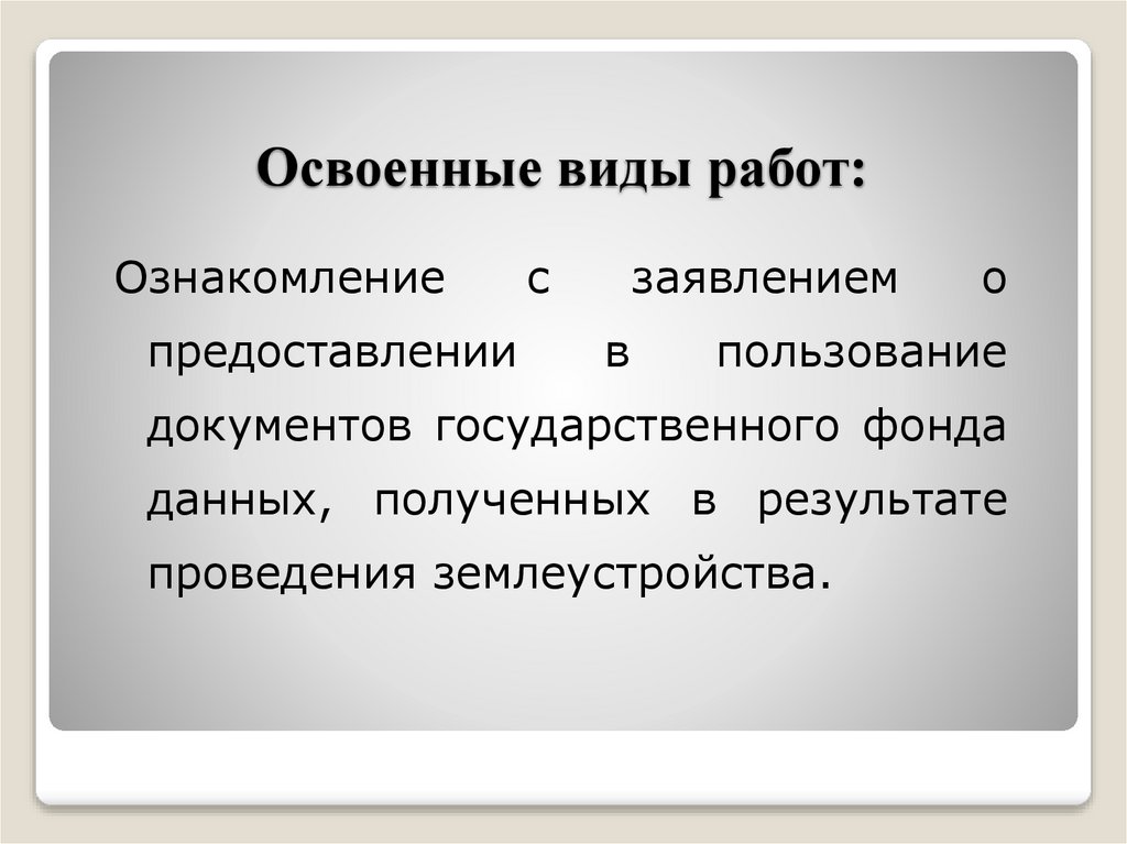 Освоенные виды работ:Ознакомление
