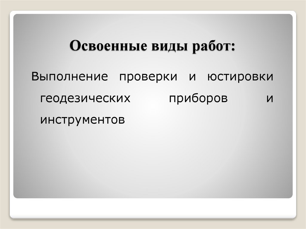 Освоенные виды работ:Выполнение проверки и юстировки