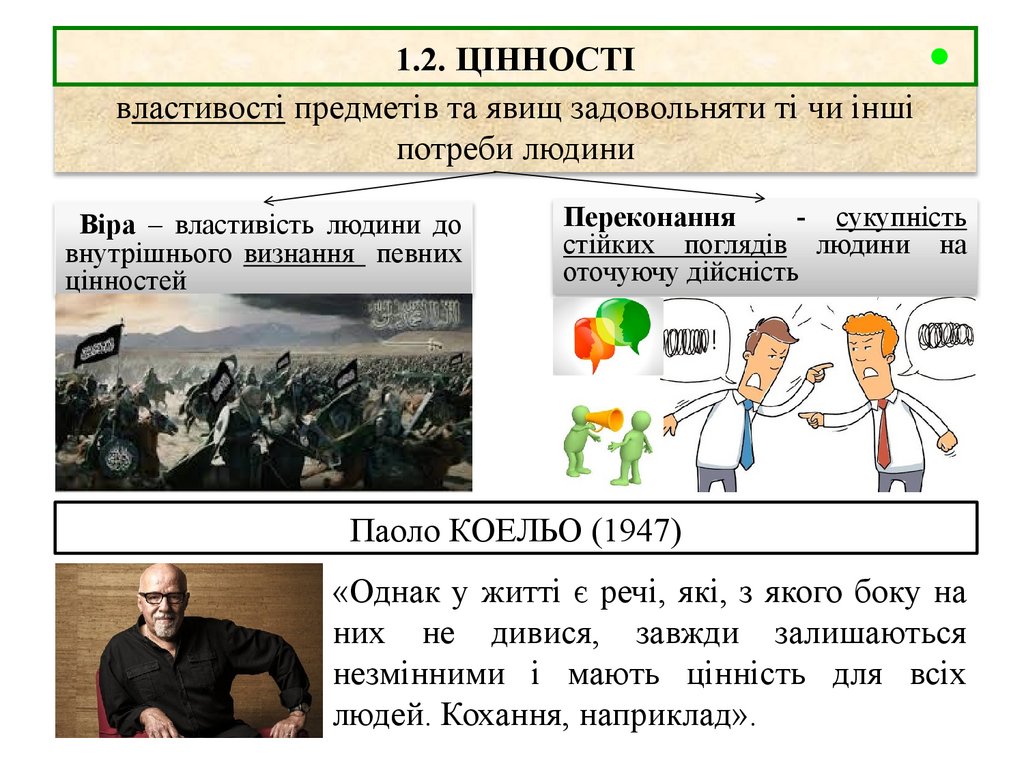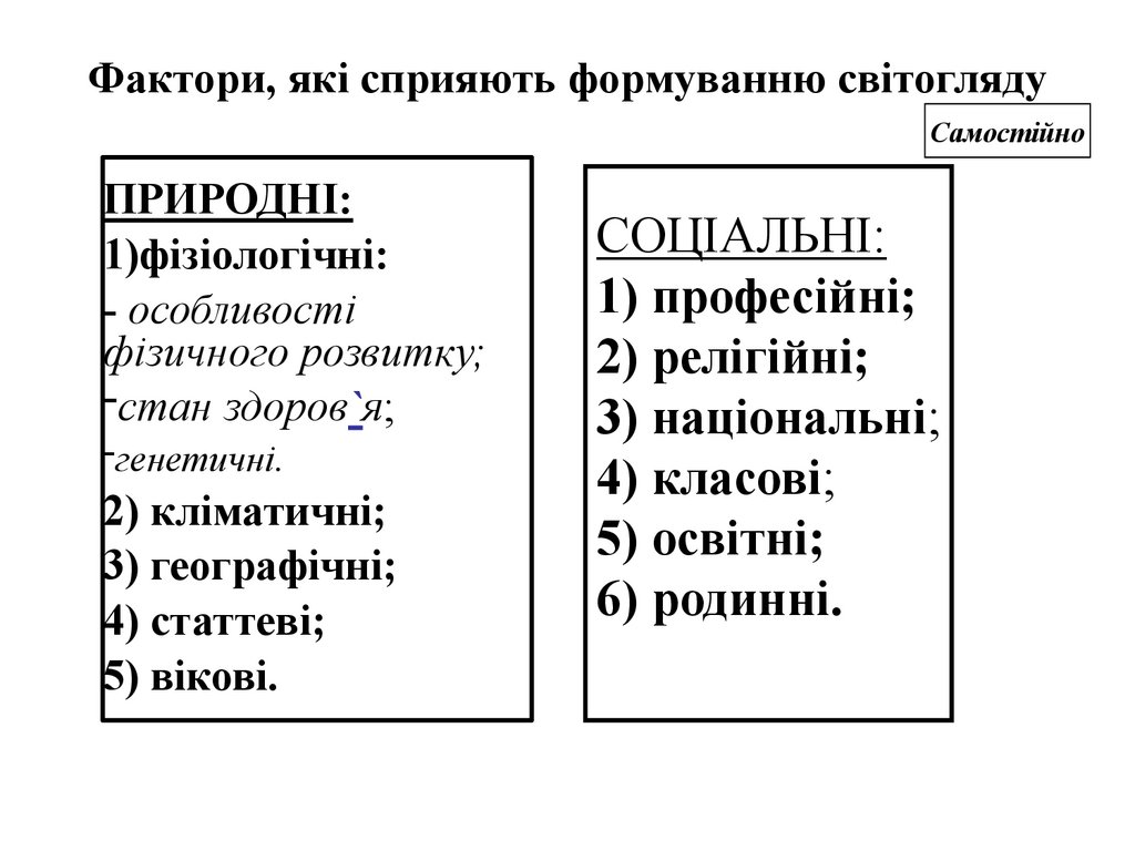 та зумовлюють певне практичне і теоретичне ставлення людини