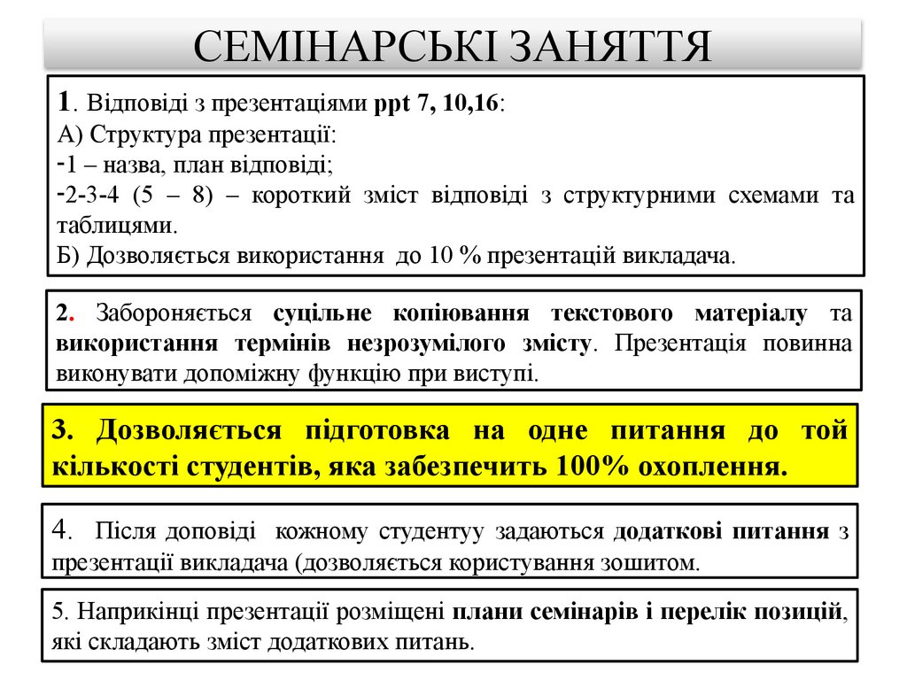 СЕМІНАРСЬКІ ЗАНЯТТЯ1. Відповіді з презентаціями ppt 7, 10,16: