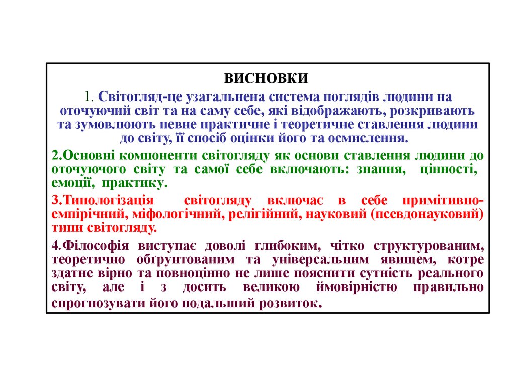 ВИСНОВКИ1. Світогляд-це узагальнена система поглядів людини на