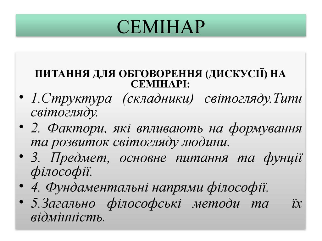 СЕМІНАРПИТАННЯ ДЛЯ ОБГОВОРЕННЯ (ДИСКУСІЇ) НА