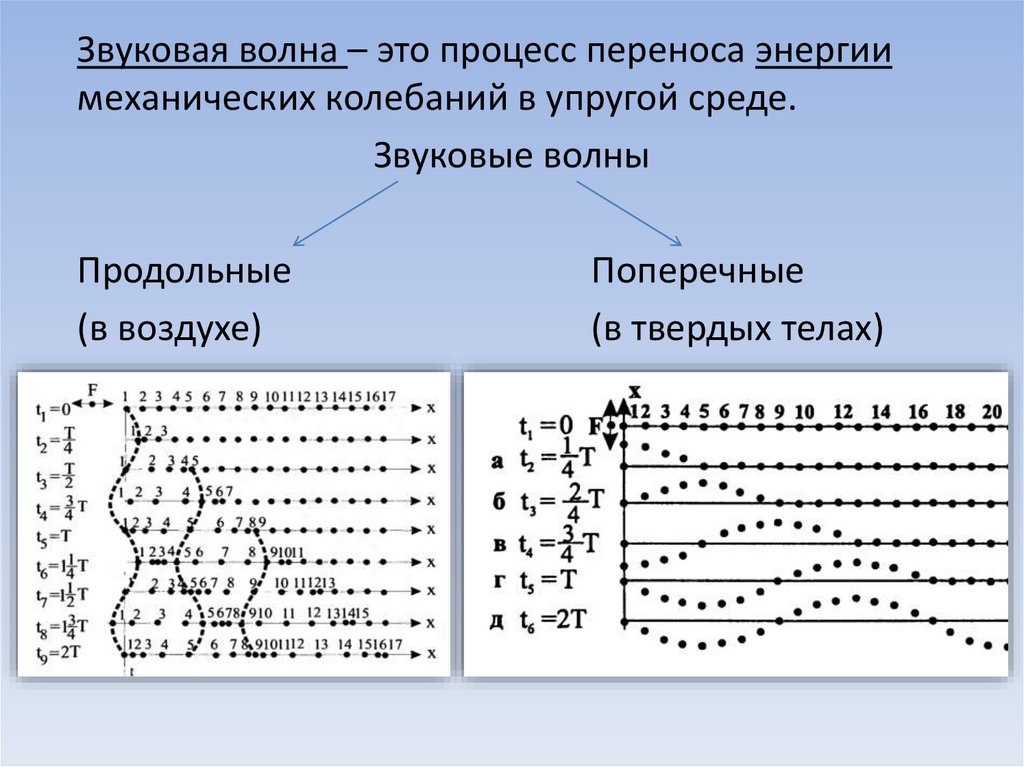 Звуковая волна – это процесс переноса энергиимеханических колебаний в упругой среде.