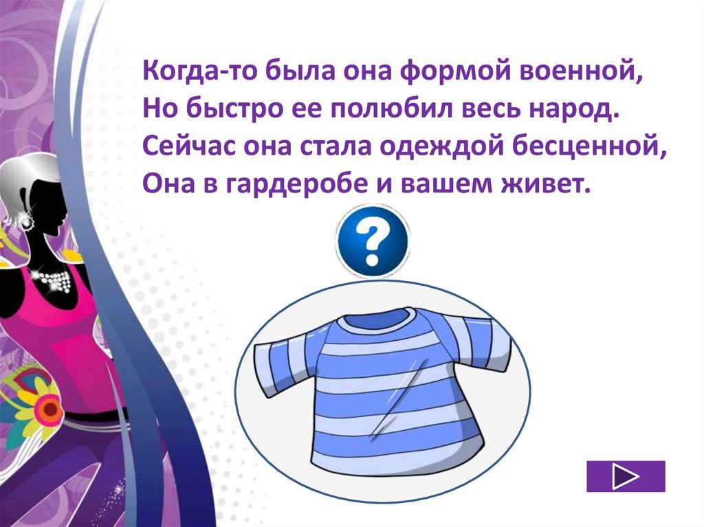 Когда-то была она формой военной,Но быстро ее полюбил весь народ.