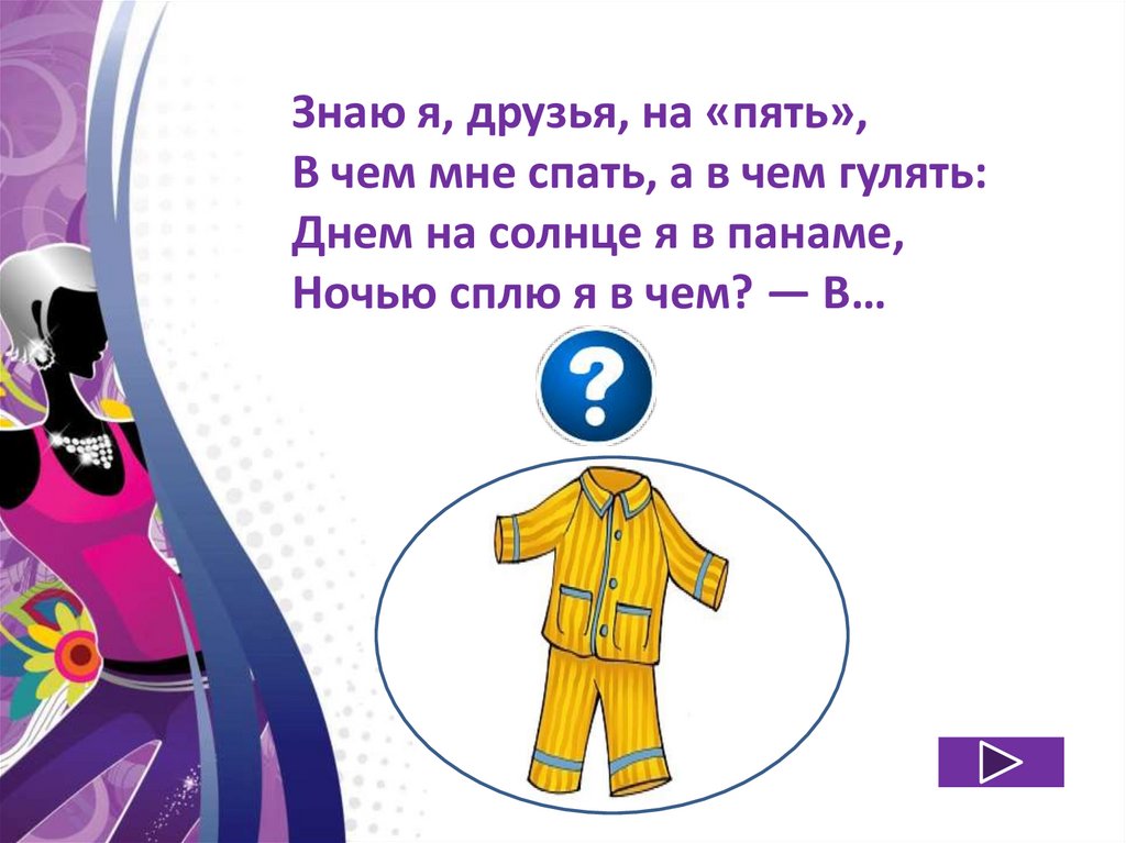 Знаю я, друзья, на «пять»,В чем мне спать, а в чем гулять:
