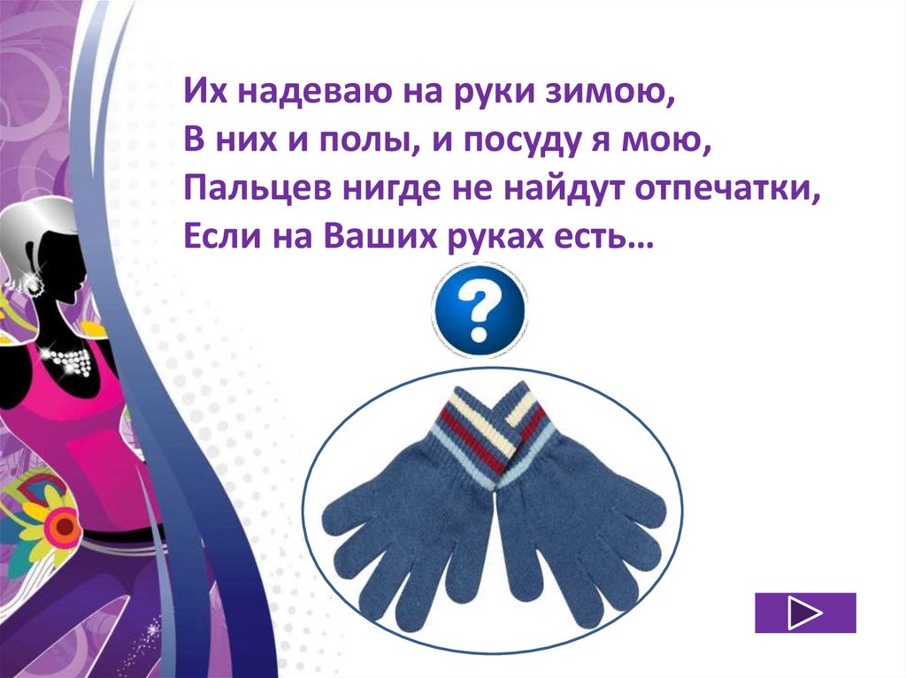Их надеваю на руки зимою,В них и полы, и посуду я мою,