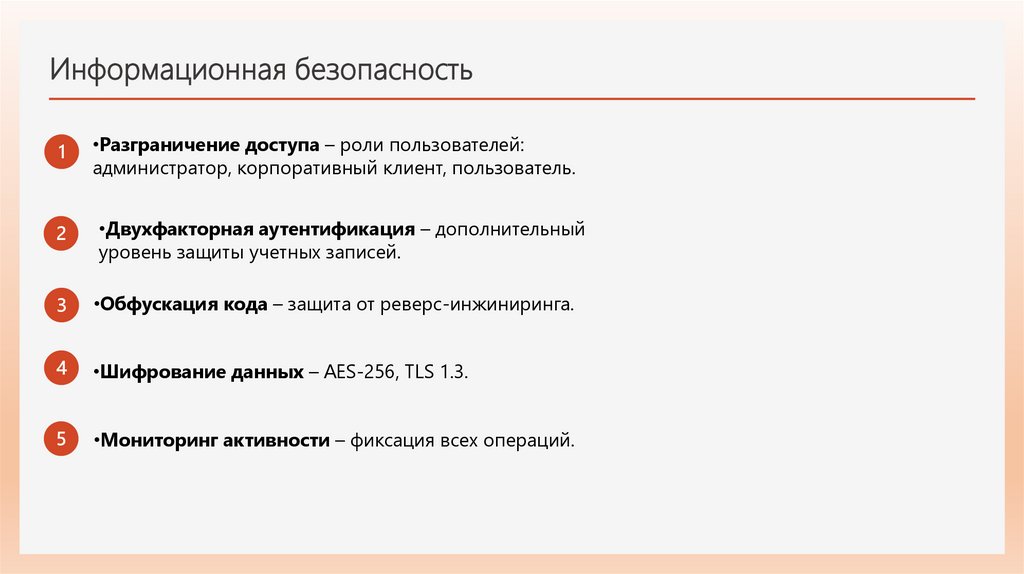 •Шифрование данных – AES-256, TLS 1.3.