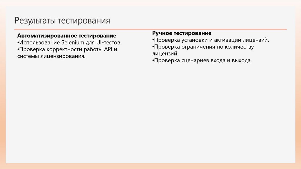 Результаты тестированияАвтоматизированное тестирование