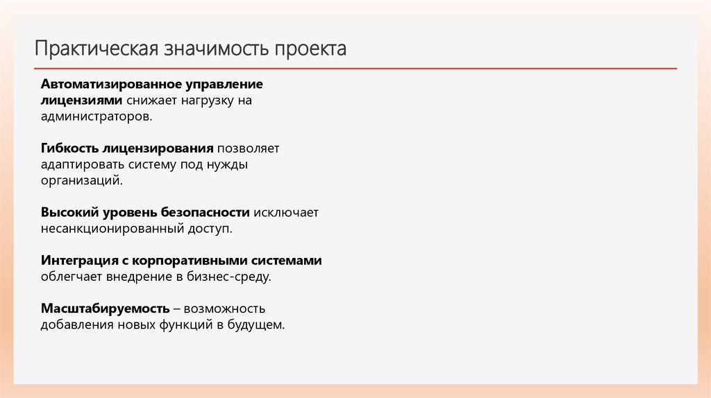 Практическая значимость проектаАвтоматизированное управление