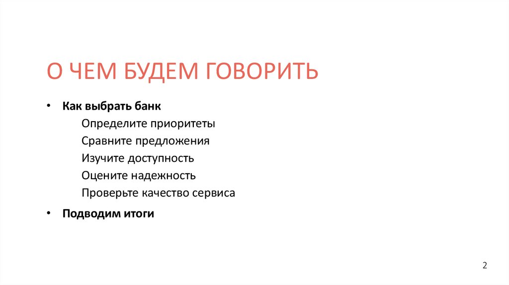 О ЧЕМ БУДЕМ ГОВОРИТЬ• Как выбрать банк